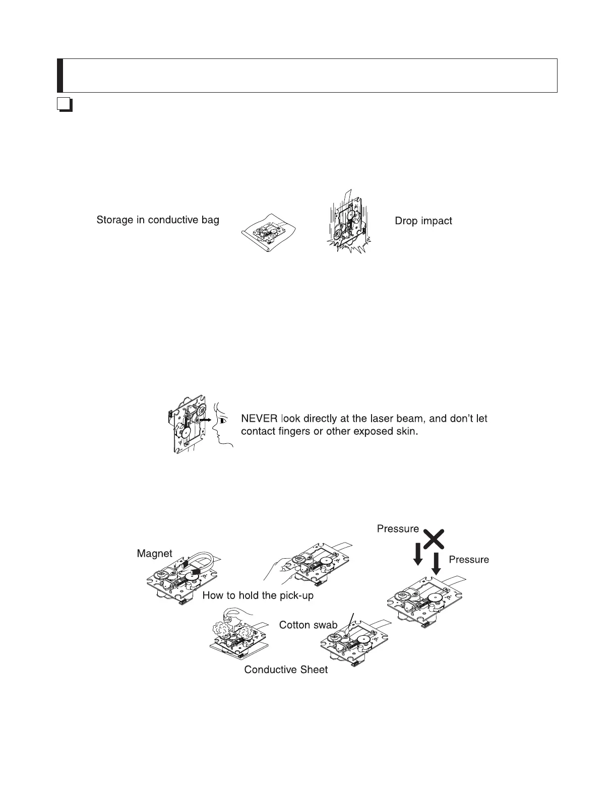 Also NEVER switch ON the power to the laser output part (lens, etc.) of the pick-up if it is damaged.
