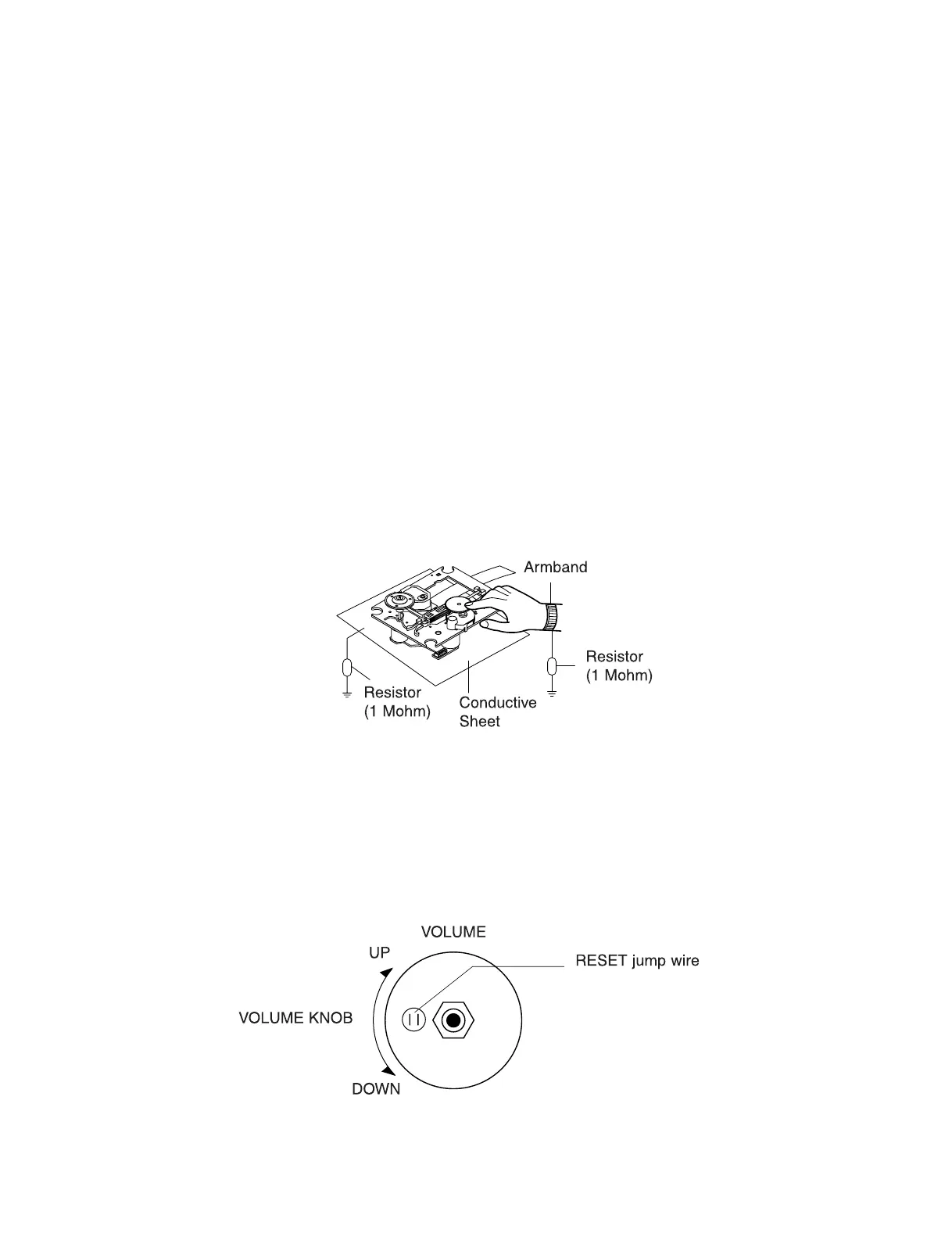 When removing the laser pick-up from its conductive bag, do not place the pick-up on the bag. (This is