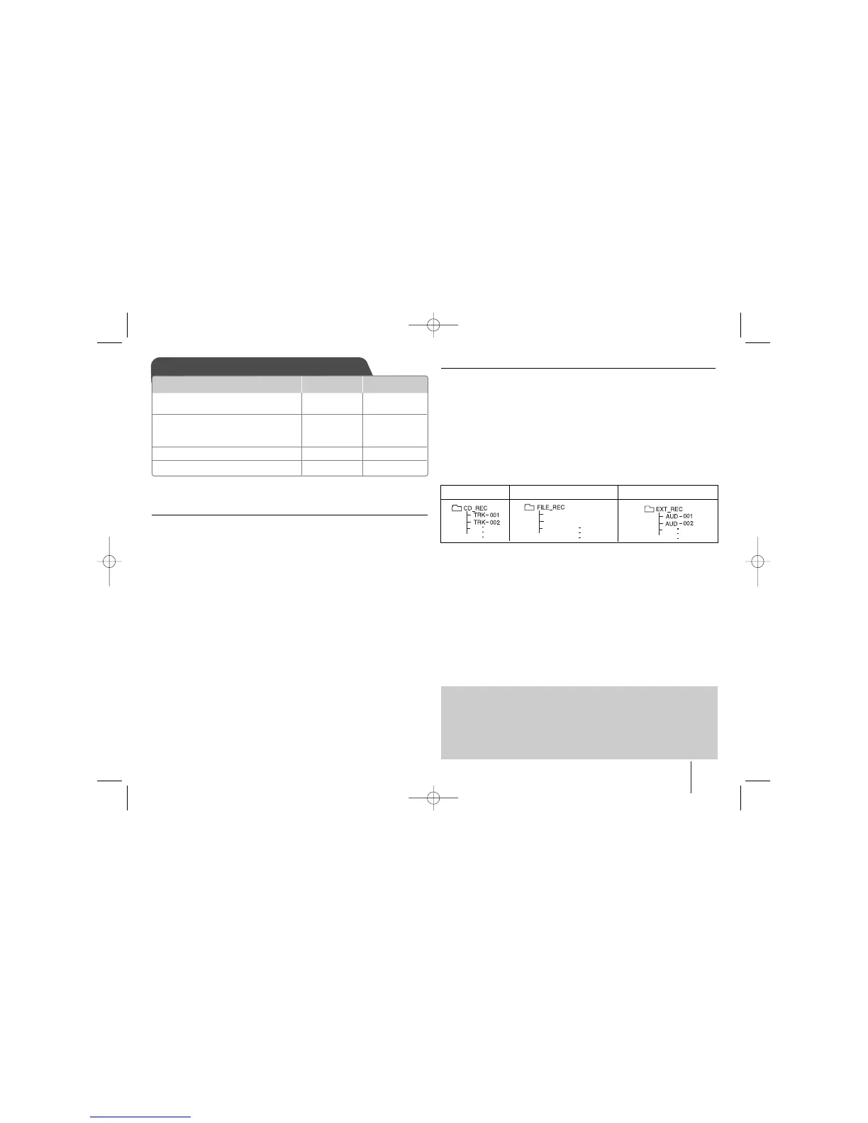 • If USB recording does not work, the message like “NO USB”, “ERROR”,