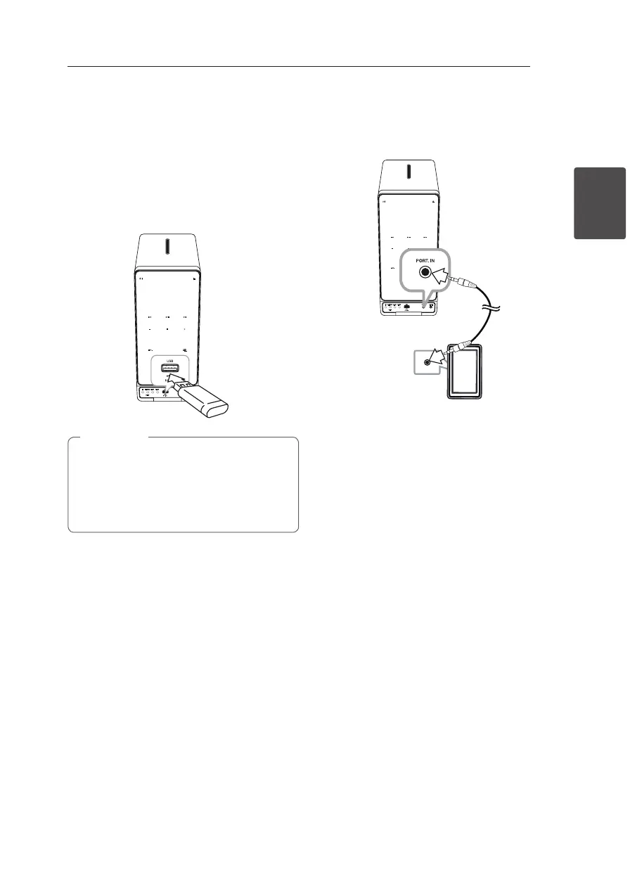 1. Connect the portable player to the PORT. IN