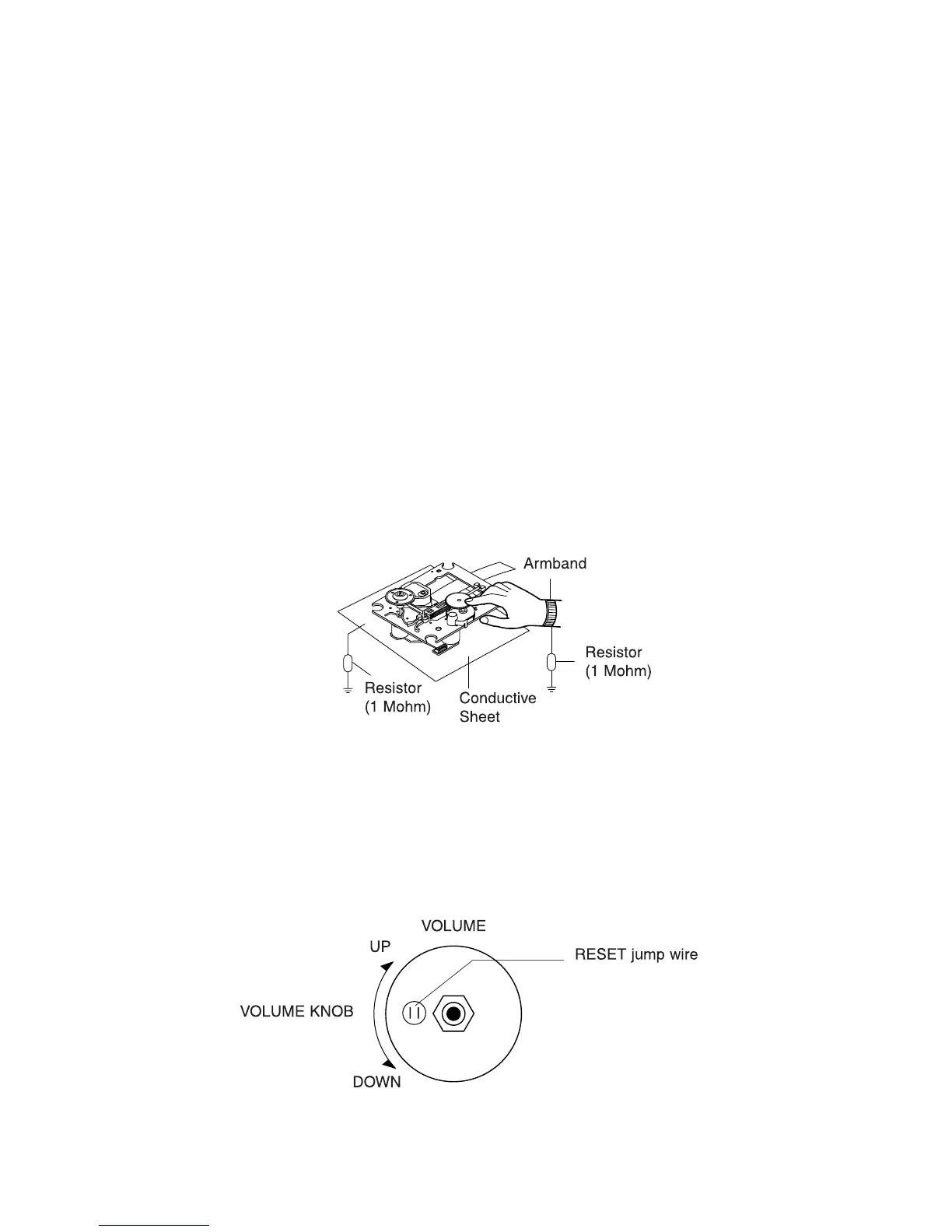 NOTE: 1. To operate the RESET jump wire, pull the volume rotary knob and release it.