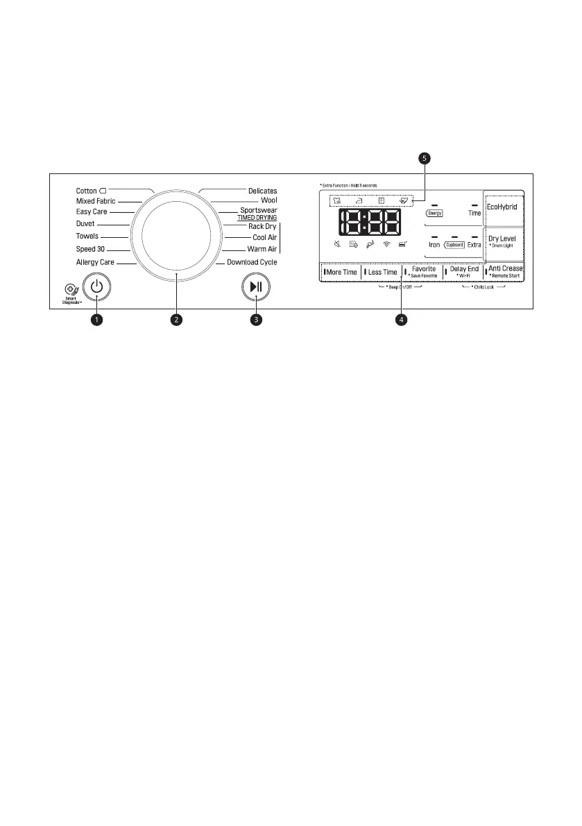 − +: This icon lights up when the appliance is in cupboard drying progress.