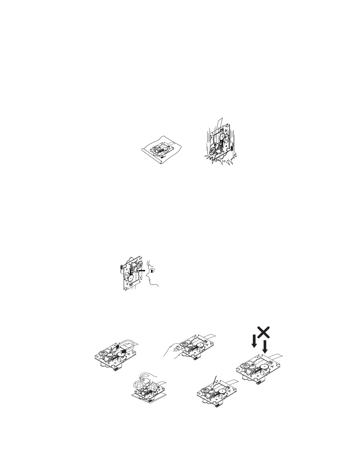 Also NEVER switch ON the power to the laser output part (lens, etc.) of the pick-up if it is damaged.