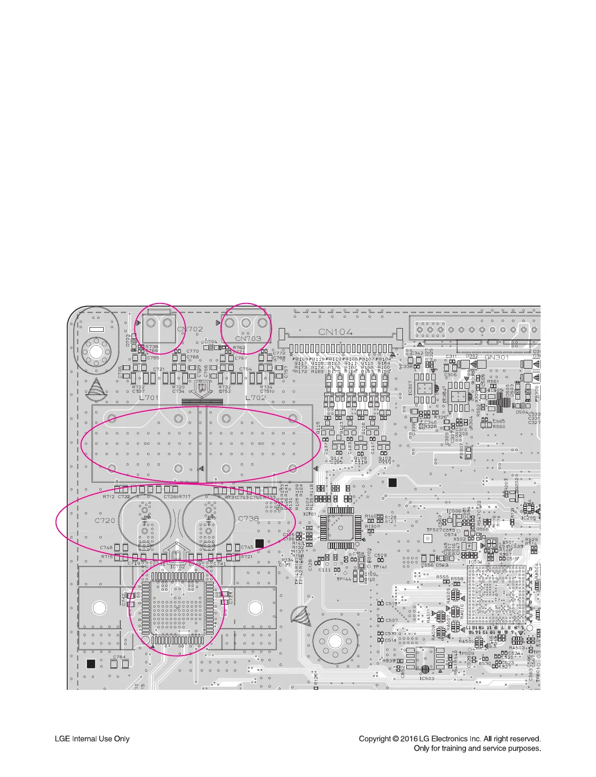 2) Check PVDD voltage of IC702. (40 V ~ 50 V).