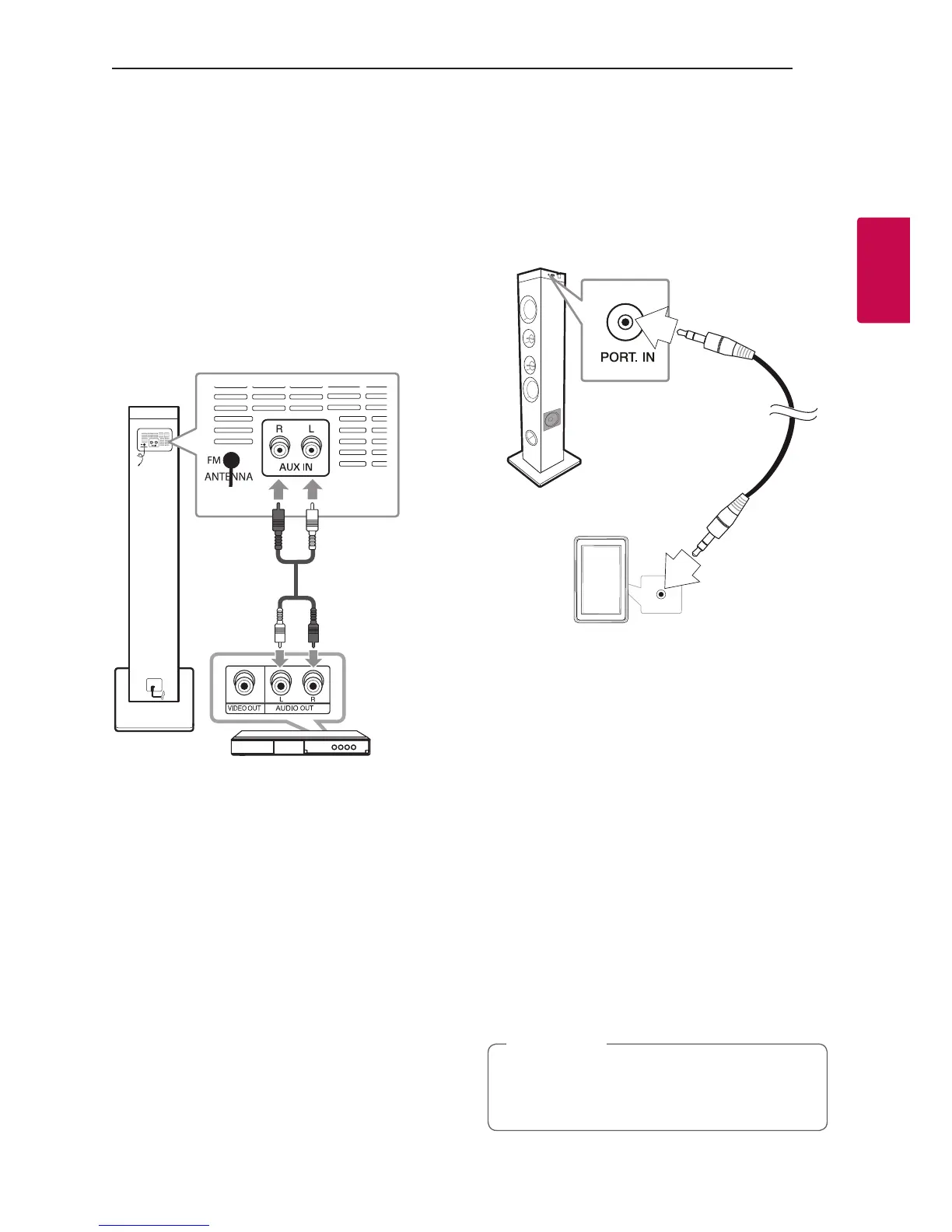 device (MP3 or PMP etc) to the PORT. IN (3.5 mm)