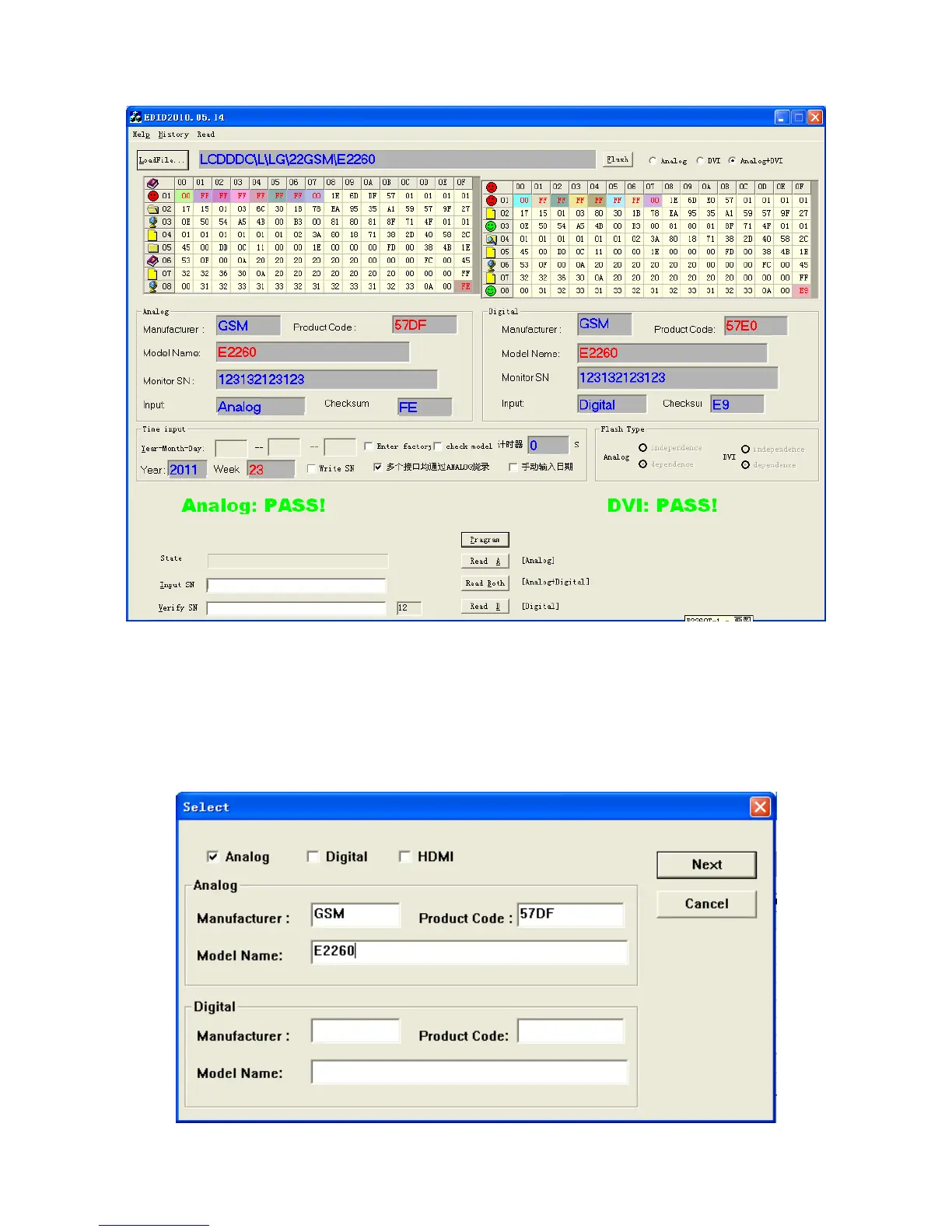 Please check Manufacturer Name, Vendor Assigned Code, Monitor Name, Serial Number:*****[????????*****]