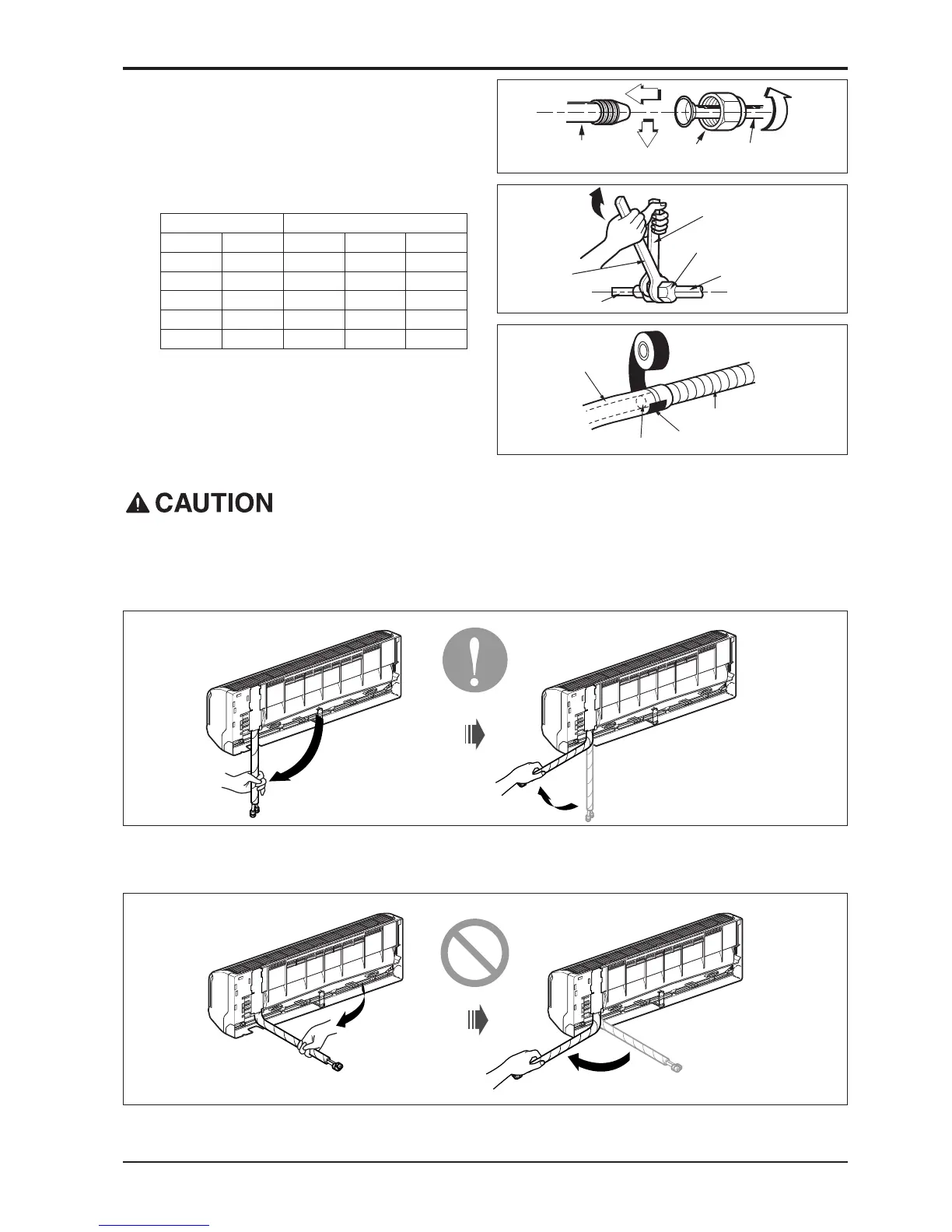 • Bending the pipe from right to left may cause damage to the tubing.