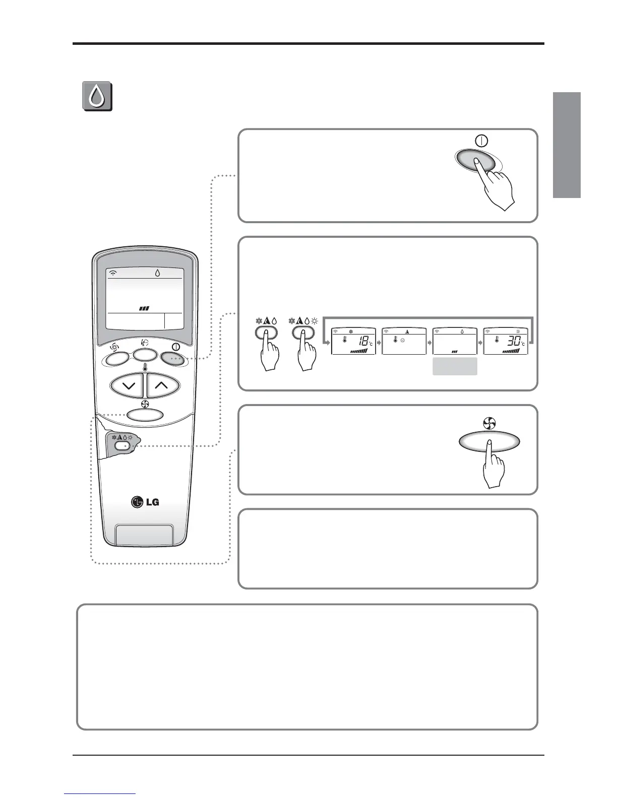 o If you select the dehumidification mode on the operation selection button, the A/C starts to run the