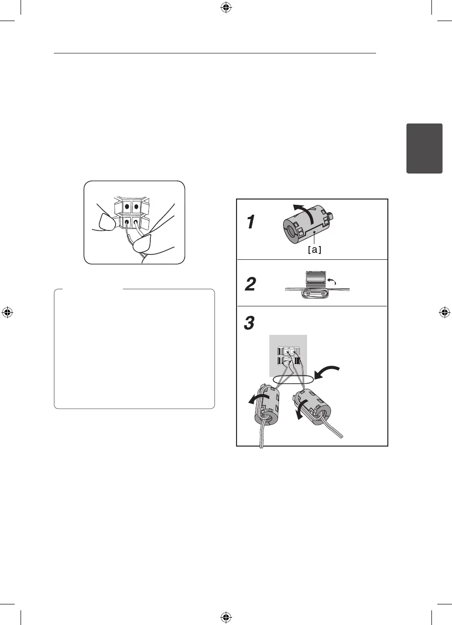 2. Wind the speaker cables once on the ferrite