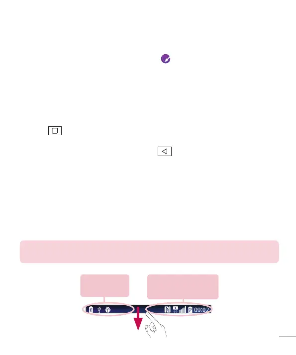 When a notification arrives, its icon appears at the top of the screen. Icons for pending