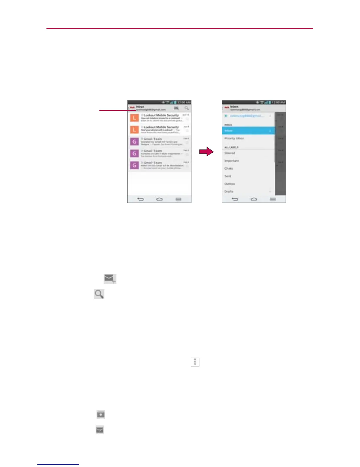 NOTE The number to the right of the selected Google Account indicates the number of unread