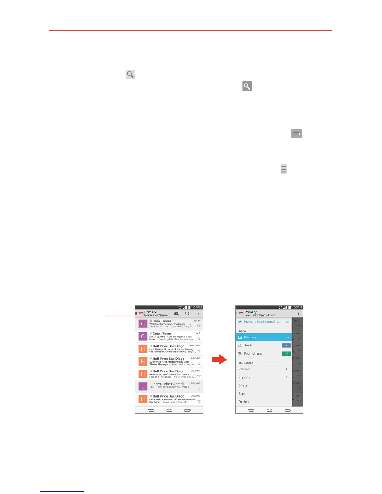 NOTE From your Gmail Inbox, you can also tap the Accounts and labels icon (at the