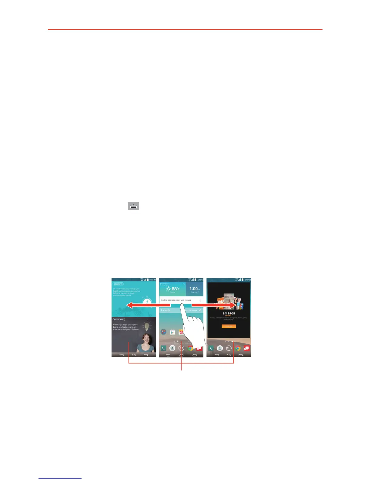 The white line dot (above the QuickTap bar) indicates the current Home screen panel.