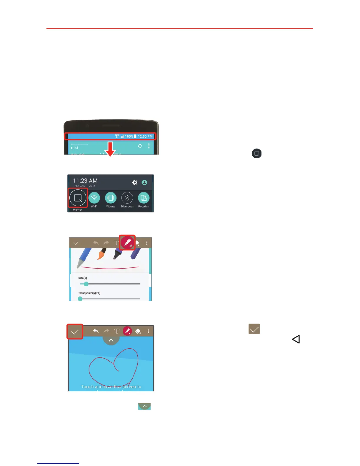 NOTE Tap the toolbar handle (at the top of the screen) to display or hide the QuickMemo+