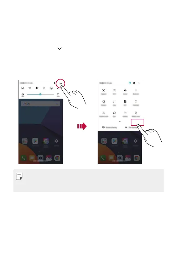 • To open the quick access icons list, drag the notifications panel