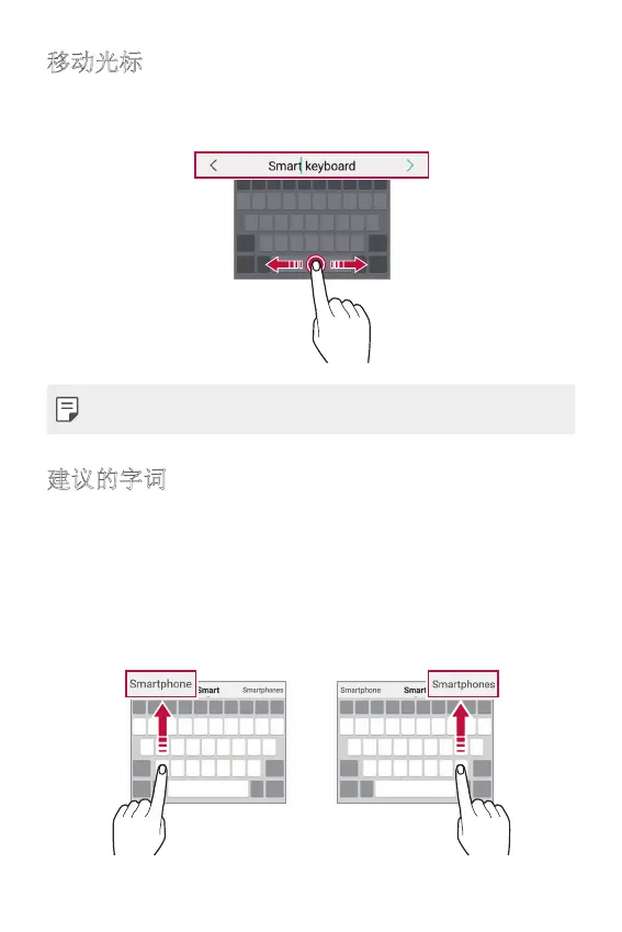 输入文字,然后点击建议的字词或轻轻向上拖动键盘的左侧