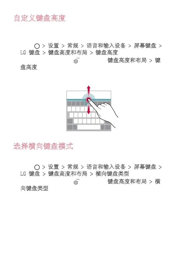 LG 键盘 键盘高度和布局 横向键盘类型。