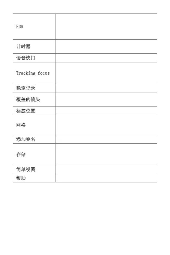 帮助 为每个相机菜单提供帮助。