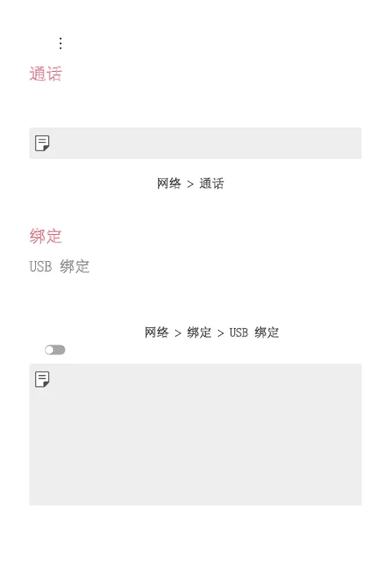 在设置屏幕,点击网络 绑定 USB 绑定,然后点击