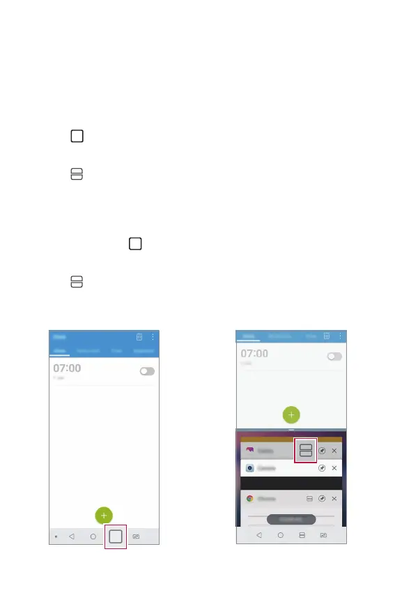 • Aplikasi yang dipilih muncul di bahagian atas separuh skrin.