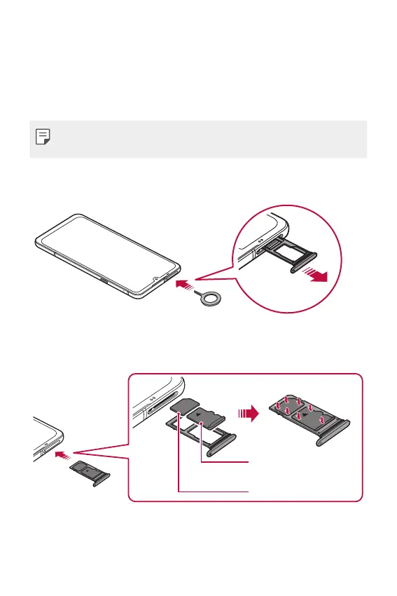 Place the SIM card or memory card on the card tray and then insert