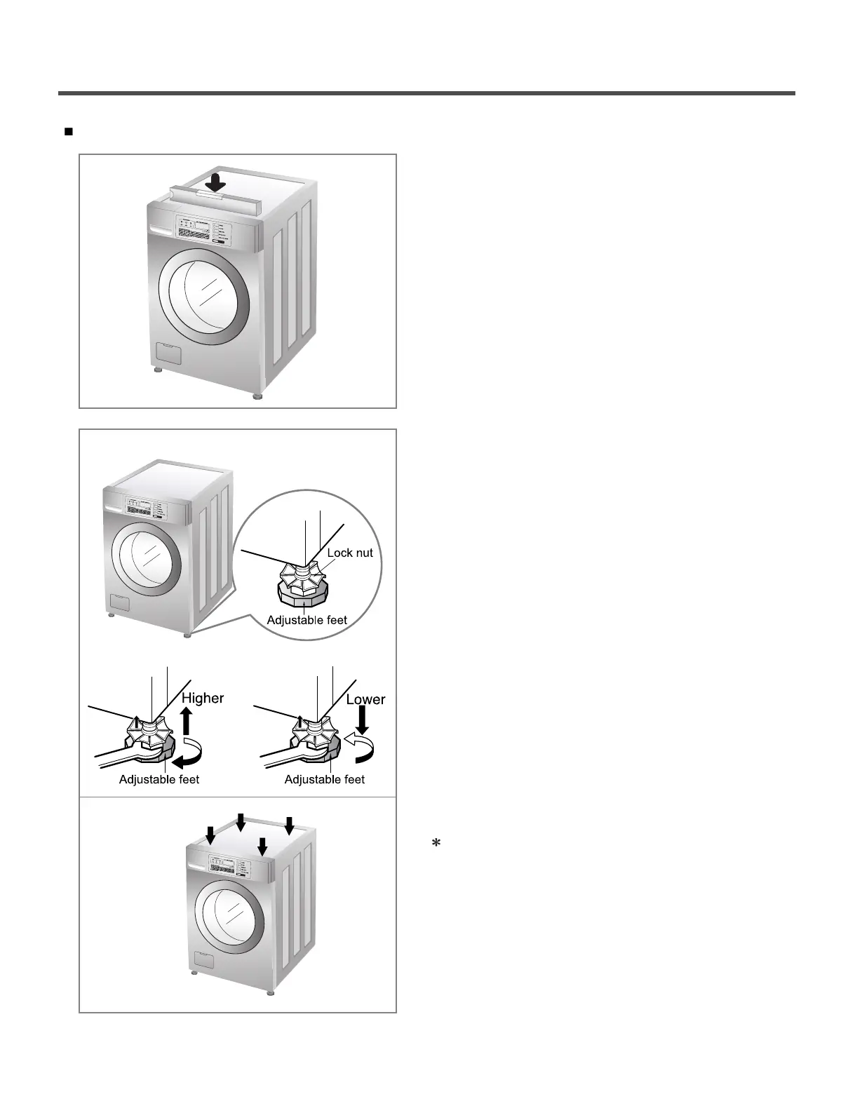 • After the washer is level, tighten the lock nuts up