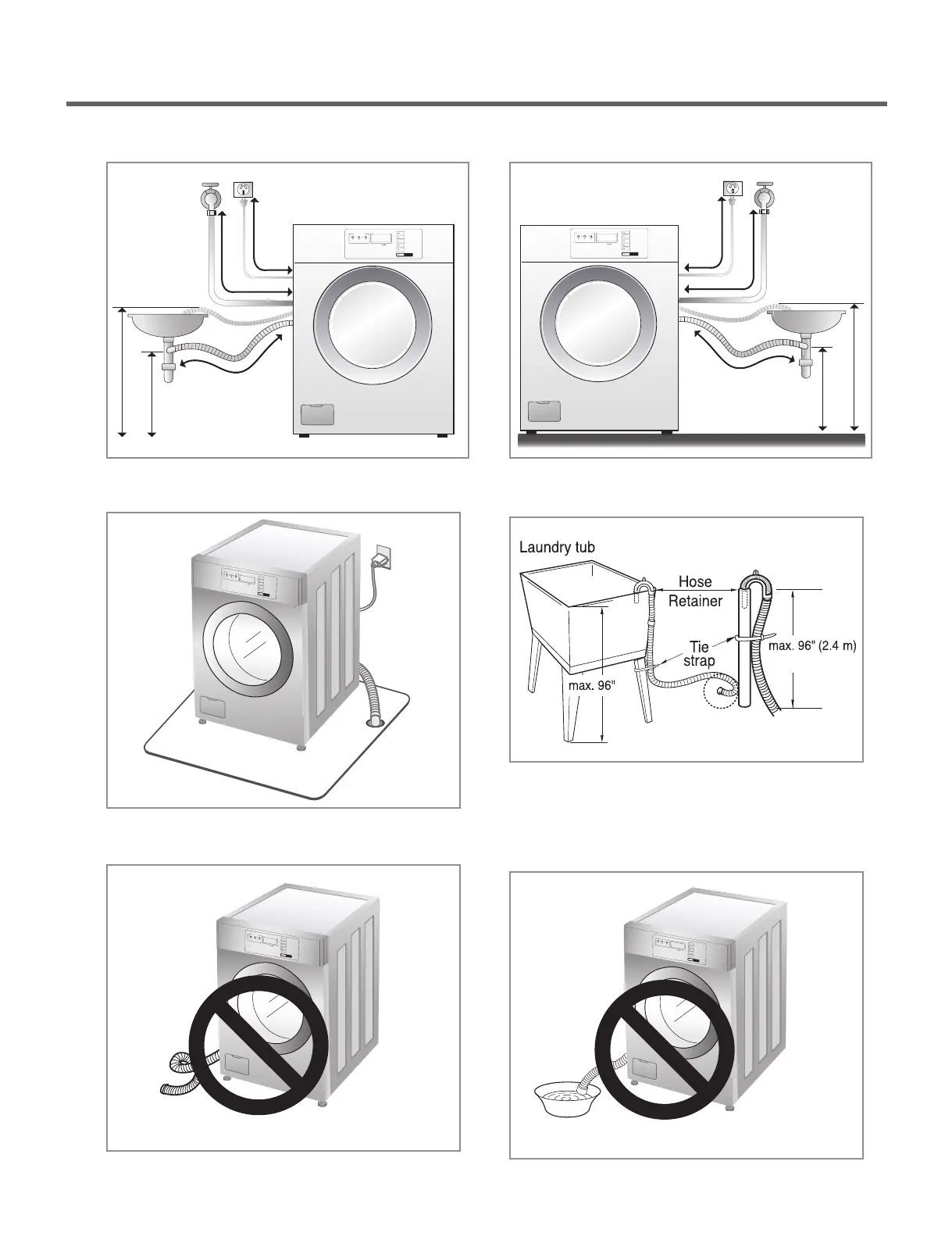 • The drain hose should not be placed higher than