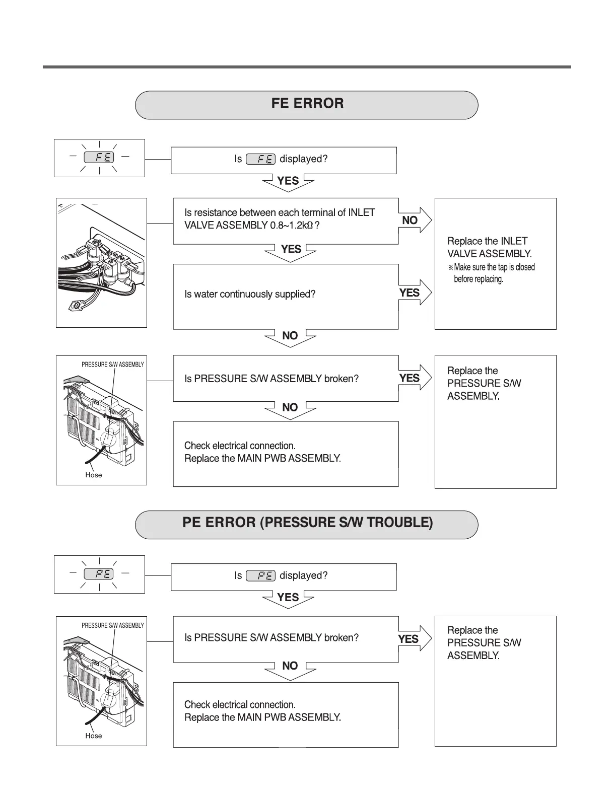 LG GCWM1069CD7 - FE ERROR; PE ERROR (PRESSURE S;W TROUBLE)