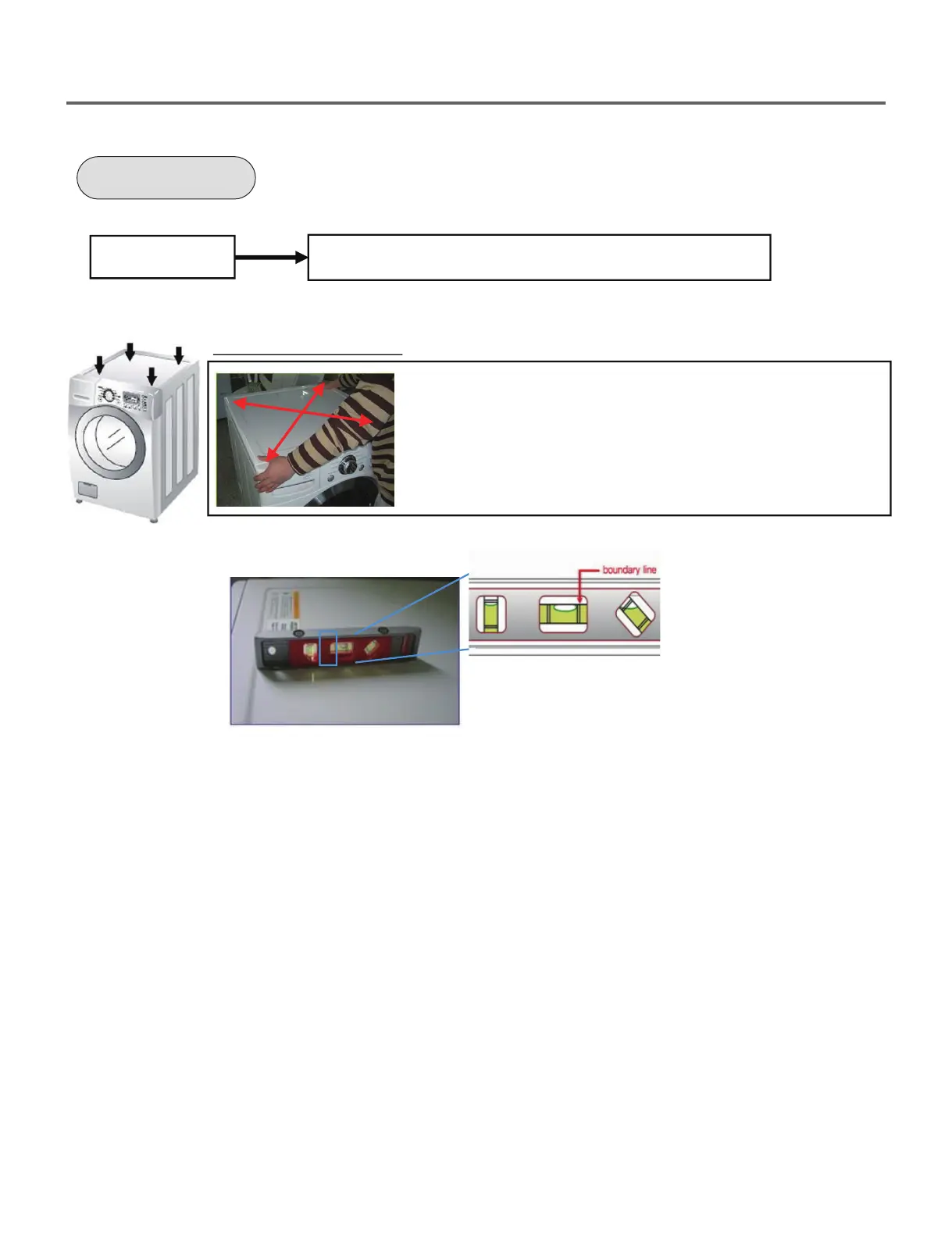 2. Use a bubble level and make sure unit is leveled from le to right, front to back, and diagonally.