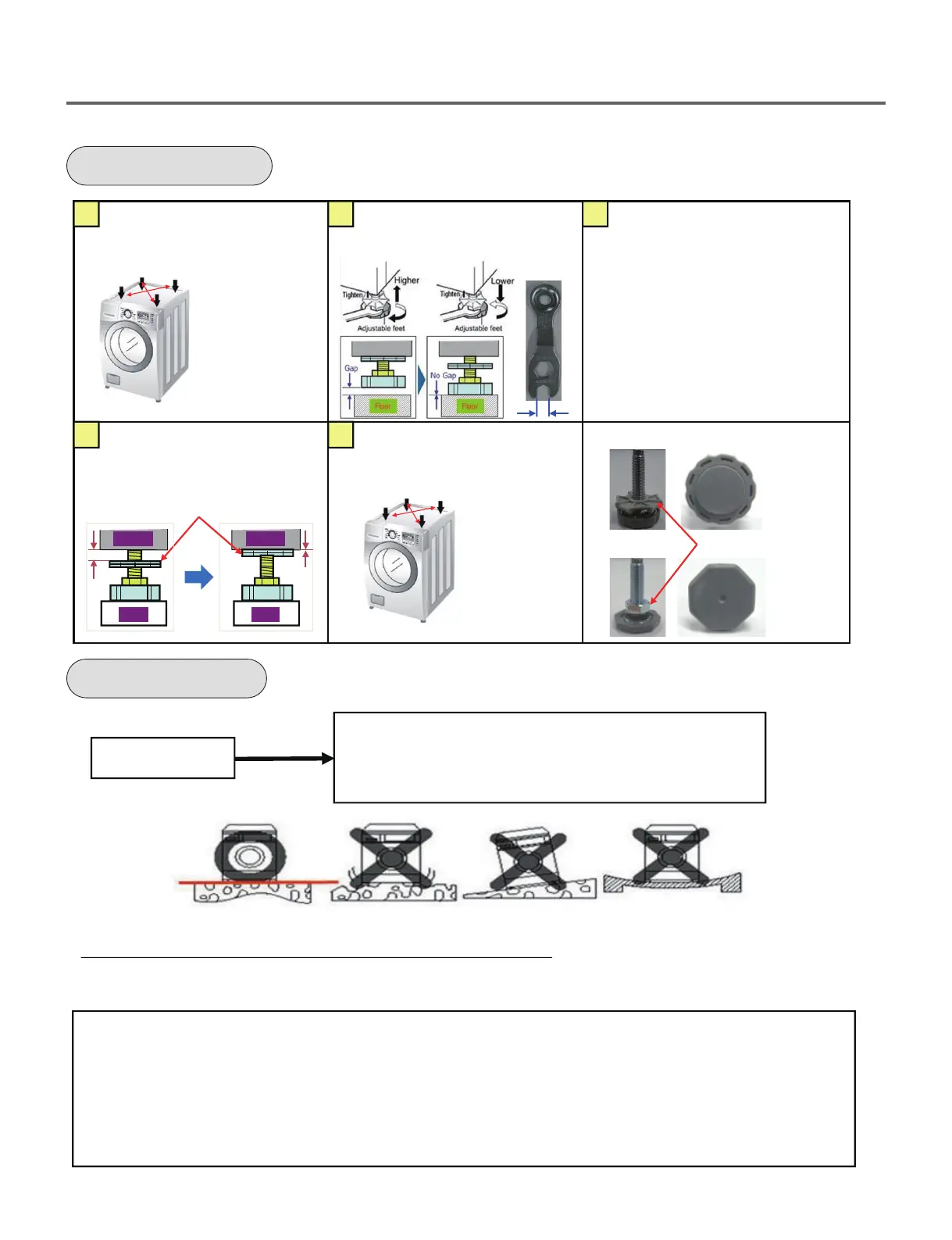 Adjust Legs for leveling Perform the load test in Rinse+Spin