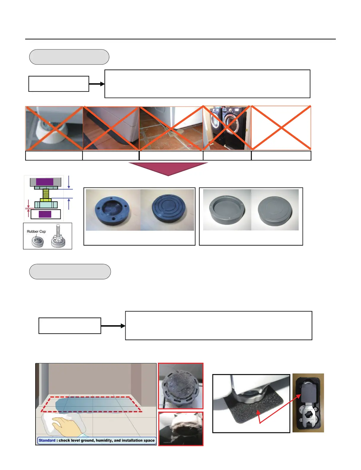 Use rubber cup for reducing the gap and adjust legs for leveling