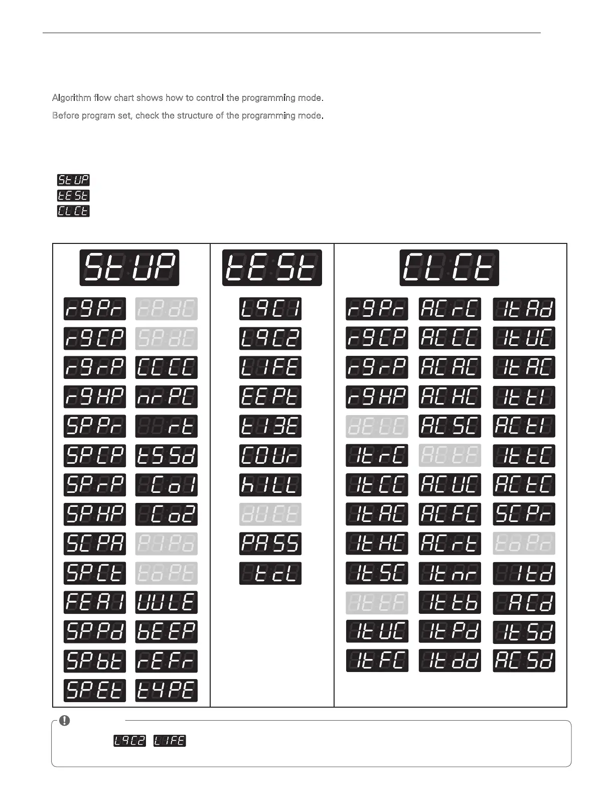 Before program set, check the structure of the programming mode.