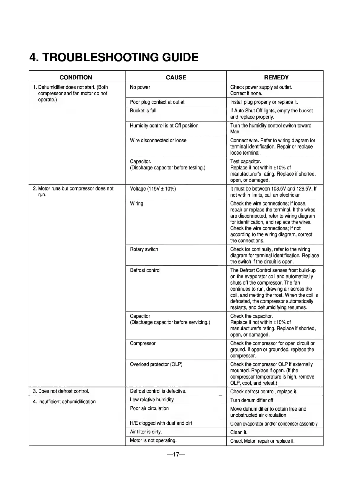 LG GHD30 - 4. TROUBLESHOOTING GUIDE; Common Dehumidifier Issues and Solutions