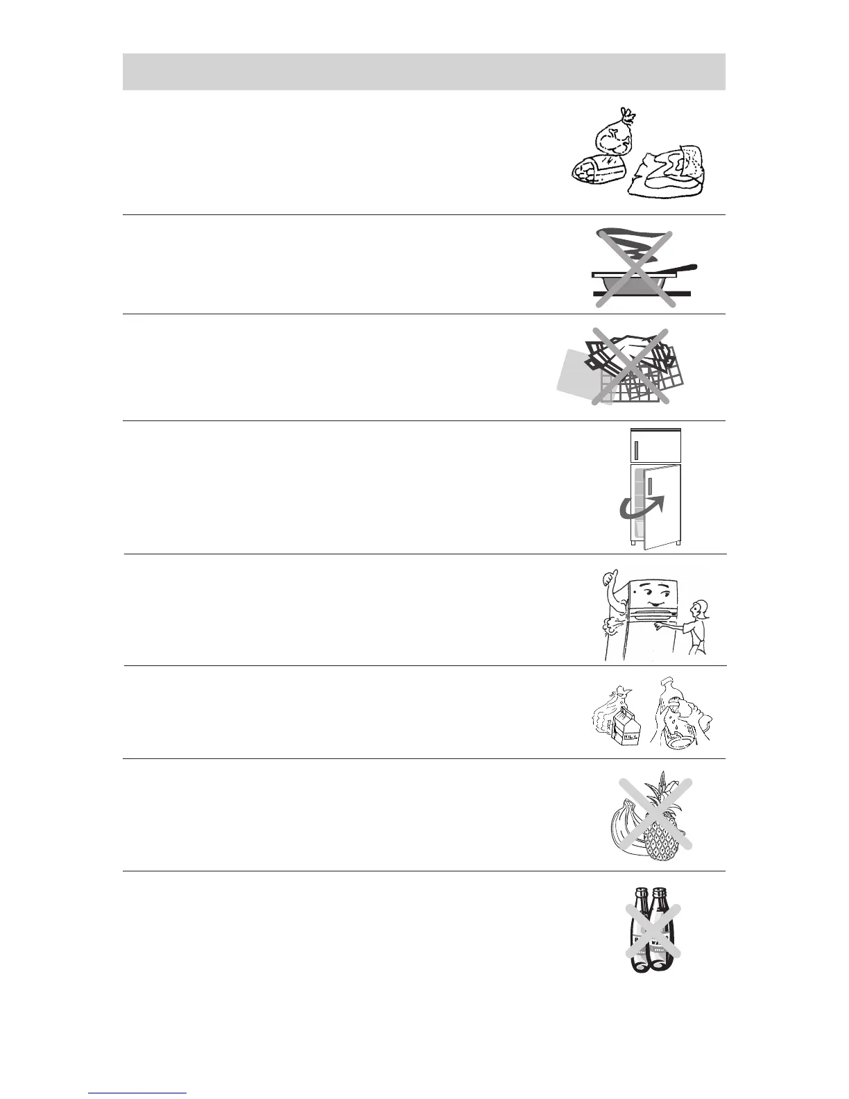 Do not store food which goes bad easily at low temperatures. Such as bananas,
