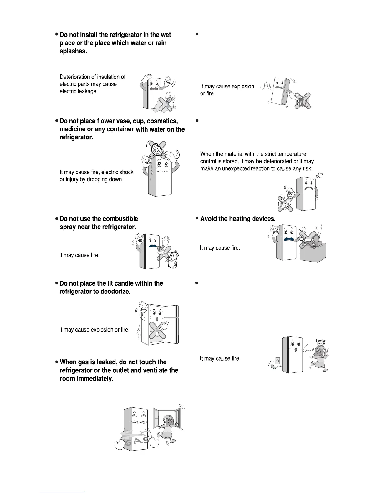 or spray etc. near or in the refrigerator.