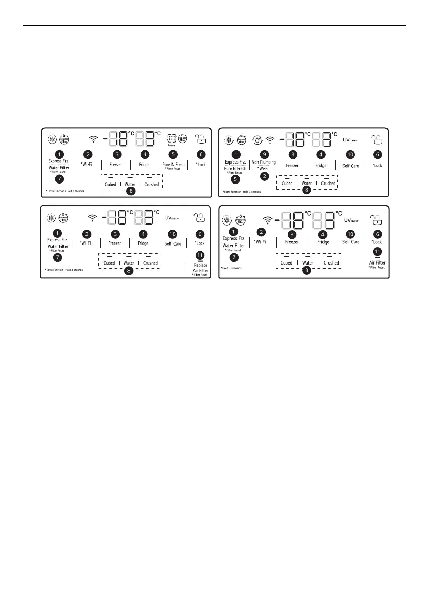 This button allows the appliance to connect to a home Wi-Fi network. Refer to Smart Functions for