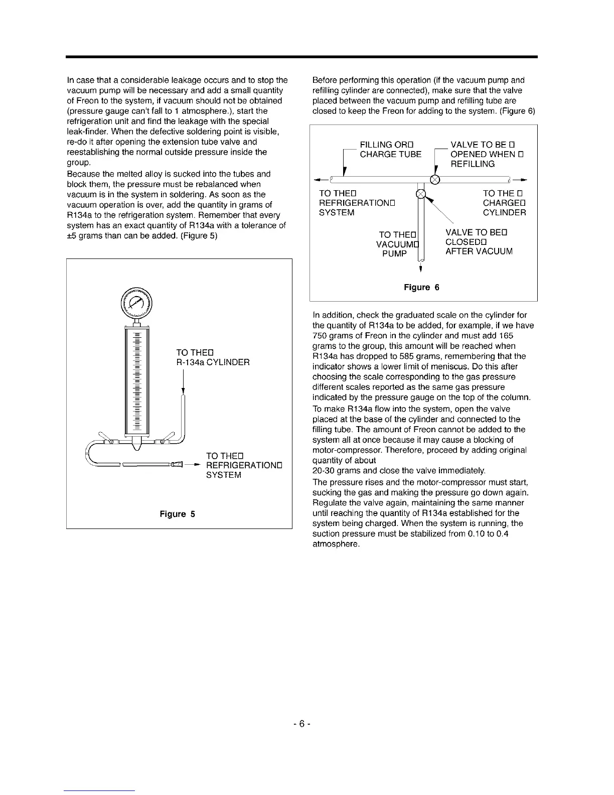 of Freon to the system, if vacuum should not be obtained