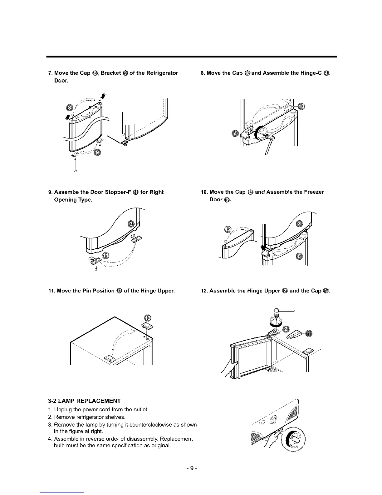 11, Move the Pin Position _ of the Hinge Upper. 12. Assemble the Hinge Upper _ and the Cap O_