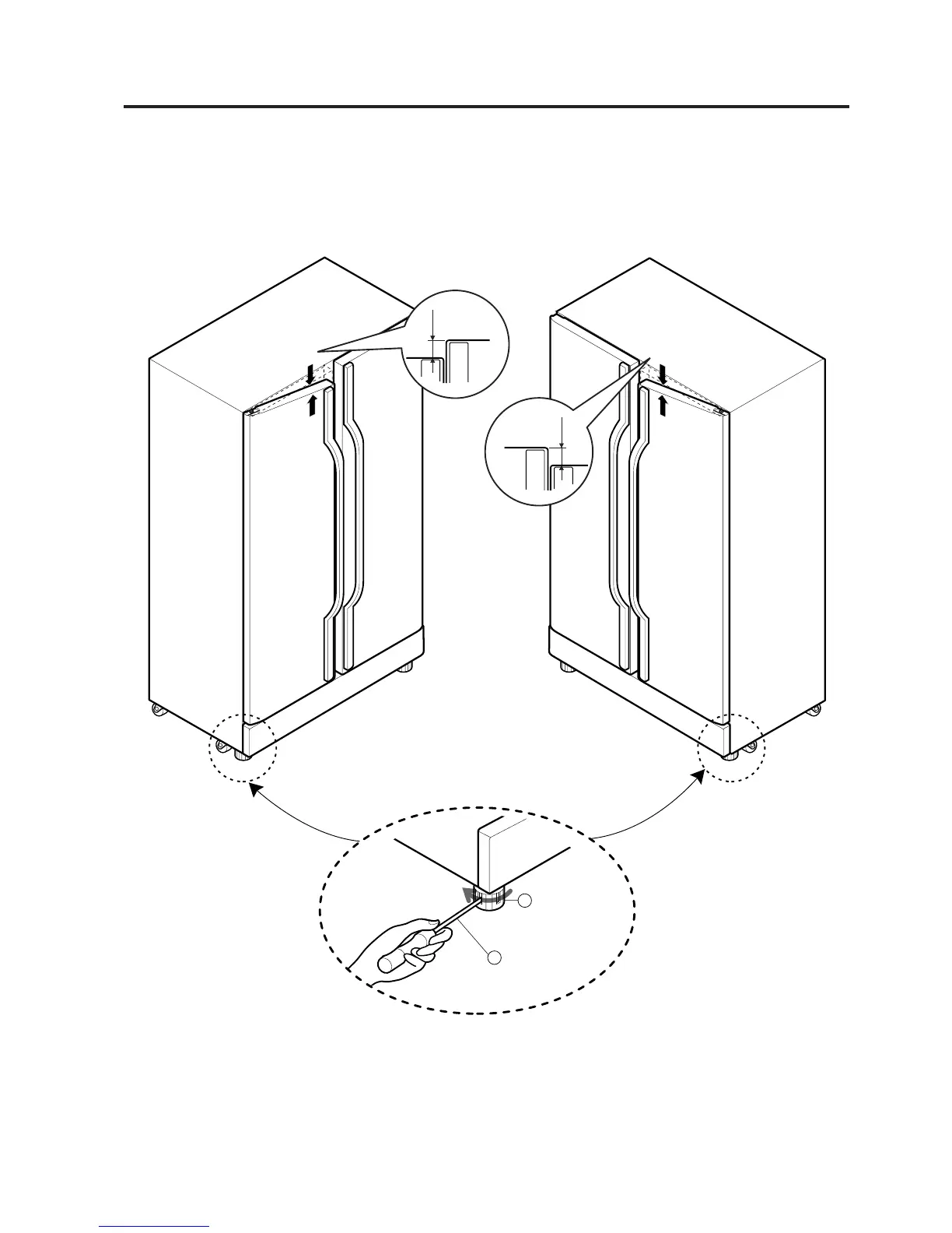 ■ Make the refrigerator level first. (If the refrigerator is not installed on the flat floor, the height of freezer and refrigerator