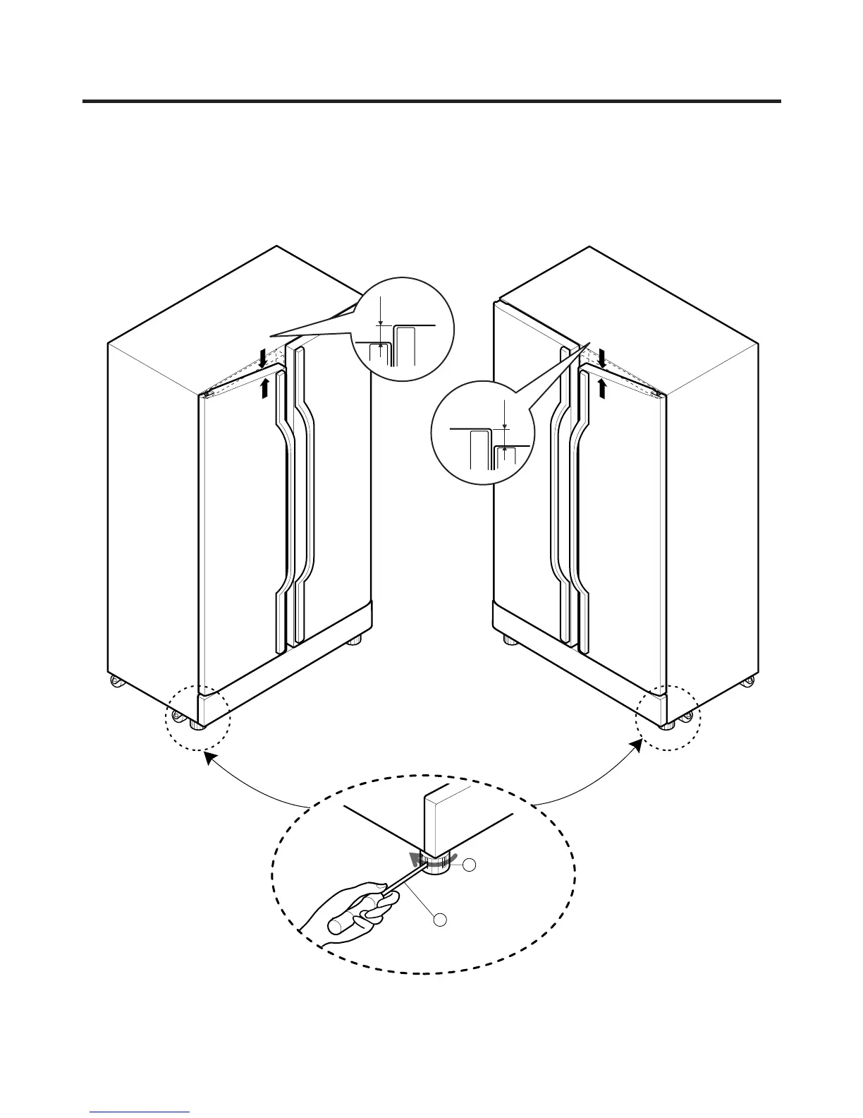 ■ Make the refrigerator level first. (If the refrigerator is not installed on the flat floor, the height of freezer and refrigerator