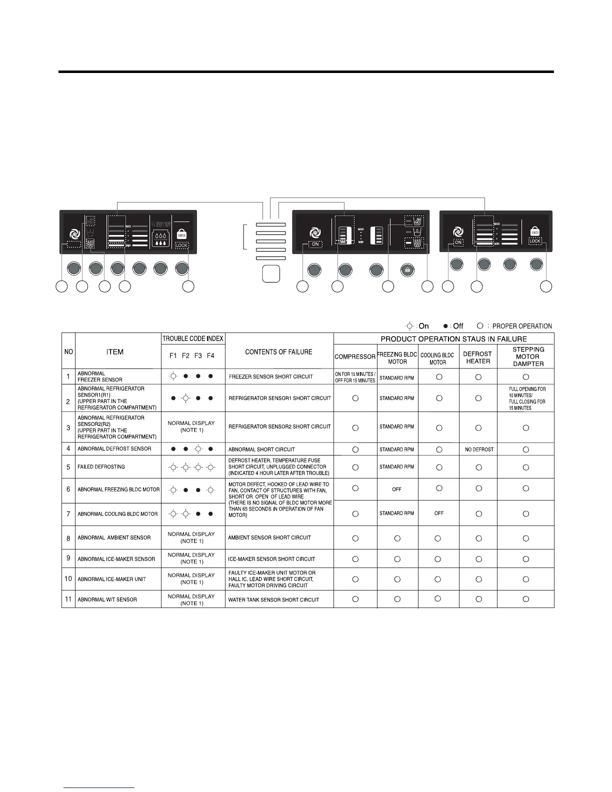 1. Function of trouble diagnosis is to make the repair service easy when the refrigerator is out of order during service.