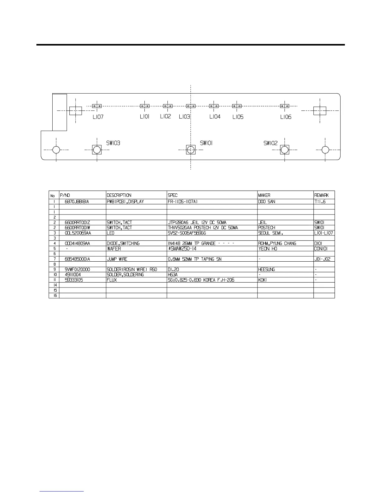 7-5-5 PWB ASS'Y, DISPLAY AND PARTS LIST