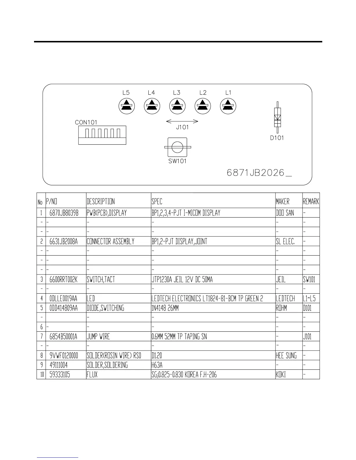 7-5-6 PWB ASS'Y, DISPLAY AND PARTS LIST