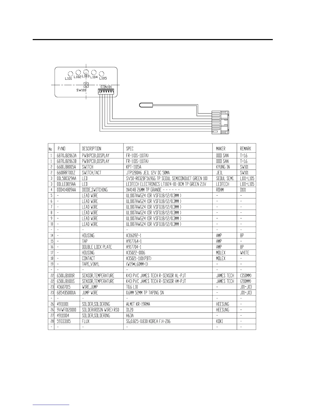 7-5-3 PWB ASSEMBLY, DISPLAY AND PARTS LIST