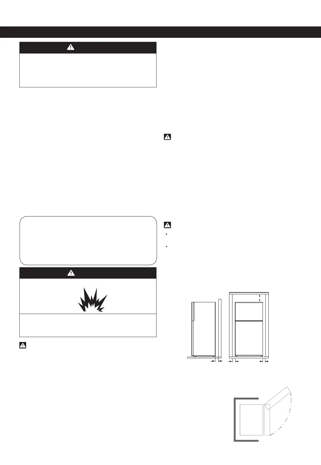 2. Install the refrigerator in an area between 55 °F (13 °C)