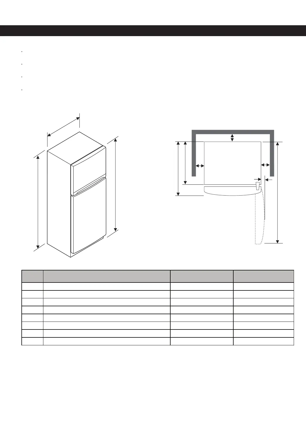 of the refrigerator to open the doors, and at least 2 inches (50.8mm) between the back of the refrig-