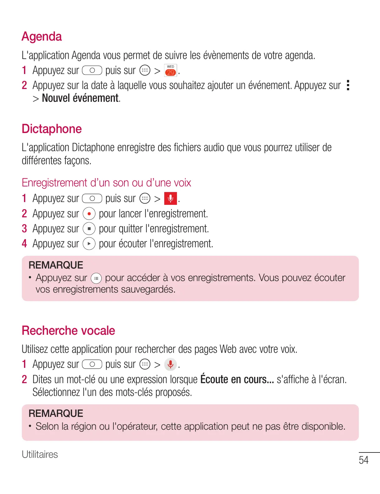 Selon la région ou l'opérateur, cette application peut ne pas être disponible.