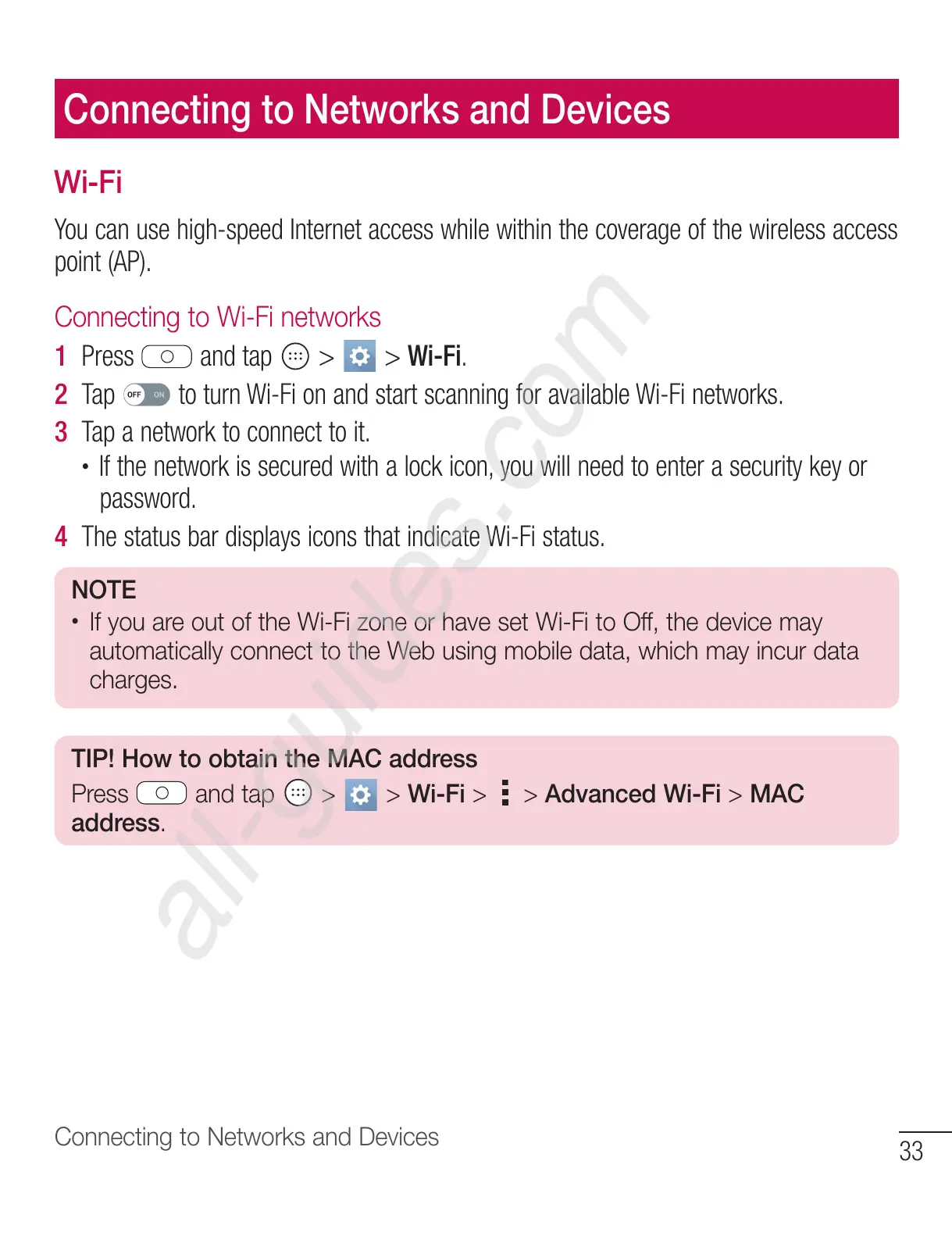 and tap > > Wi-Fi > > Advanced Wi-Fi > MAC