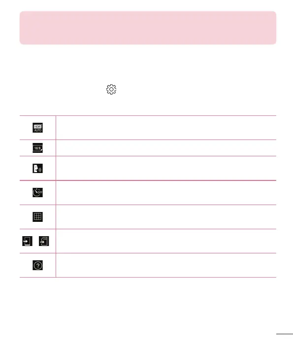 In the camera viewfinder, tap to show the advanced options. Tap each icon to