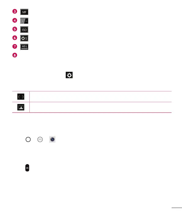 In the camera viewfinder, tap to show the advanced options. Tap each icon to
